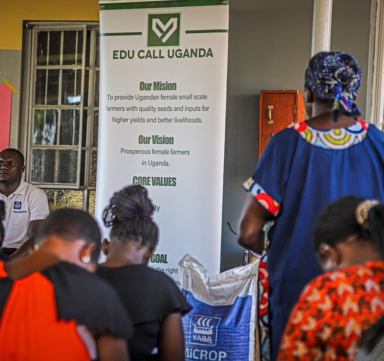 Edu call Uganda supports female small-scale farmers by providing agricultural trainings, maize seed loans, agricultural inputs and market access. With a strong focus on innovation, sustainability, and inclusion, we create opportunities to enhance their skills, improve productivity, and promote economic independence while contributing to food security and sustainable growth.